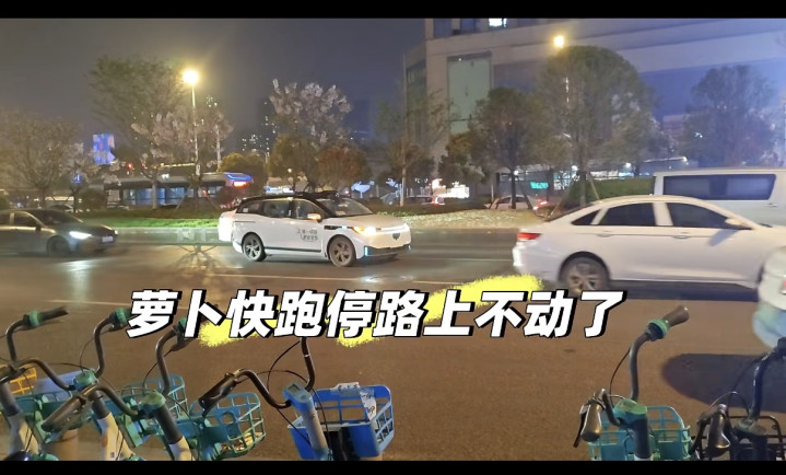 一位网友向红星资本局表示,31日晚间其在武昌遇到一辆萝卜快跑停在道路中间。该网友发布的视频显示,萝卜快跑车辆打着双闪,停滞不前,后续车辆纷纷绕行。